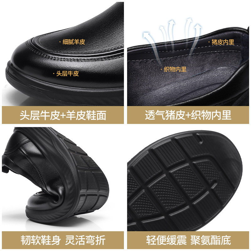 冬秋真皮商务休闲皮鞋 加绒通勤鞋 男士 轻便软底男款 大码 意尔康男鞋