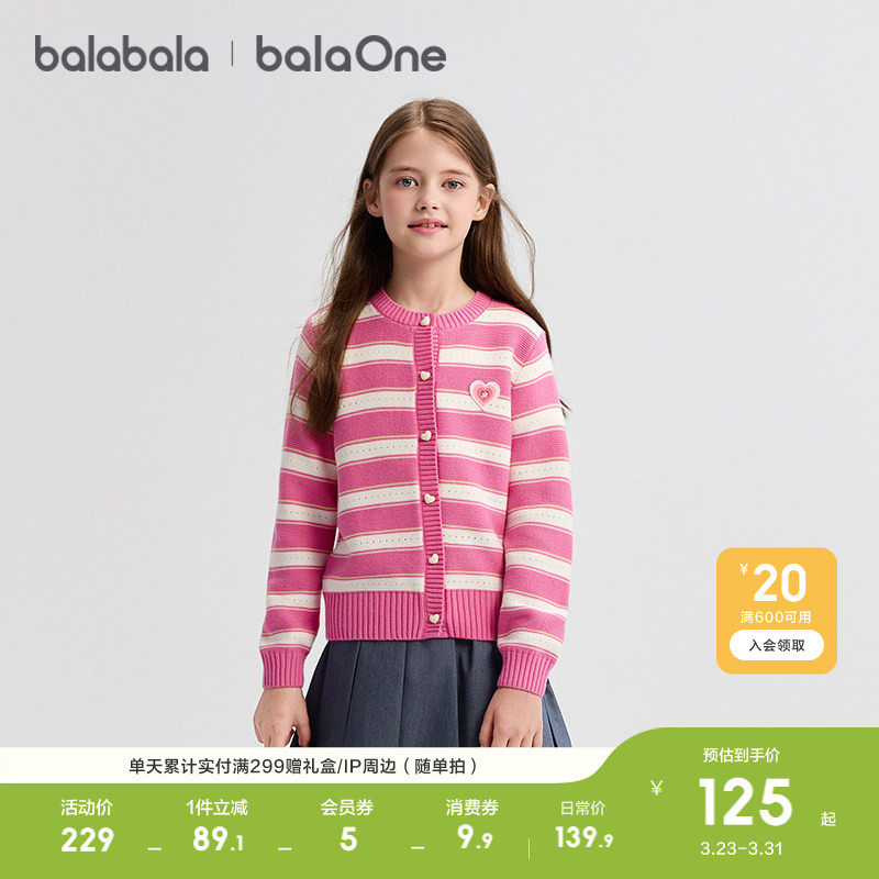针织开衫 新款 小香风甜美外套 儿童毛衣女童2026春秋季 巴拉巴拉童装