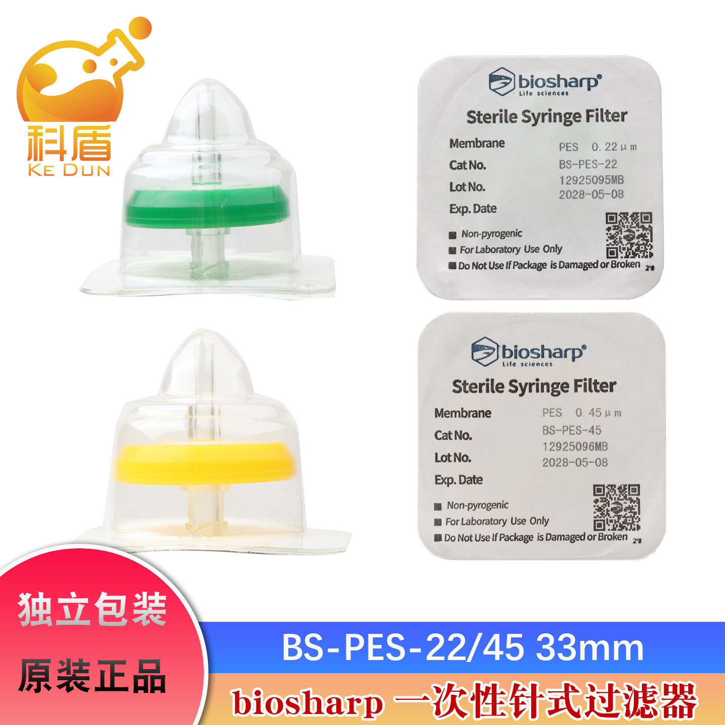 0.45um PES 33mm Biosharp白鲨BS 亲水PES 针式 一次性针头过滤器 过滤器 独立包装 0.22