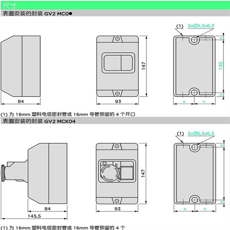 IP55 MC02 防水盒 GV2MC01 ME系列 电动机保护开关 配 GV2