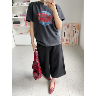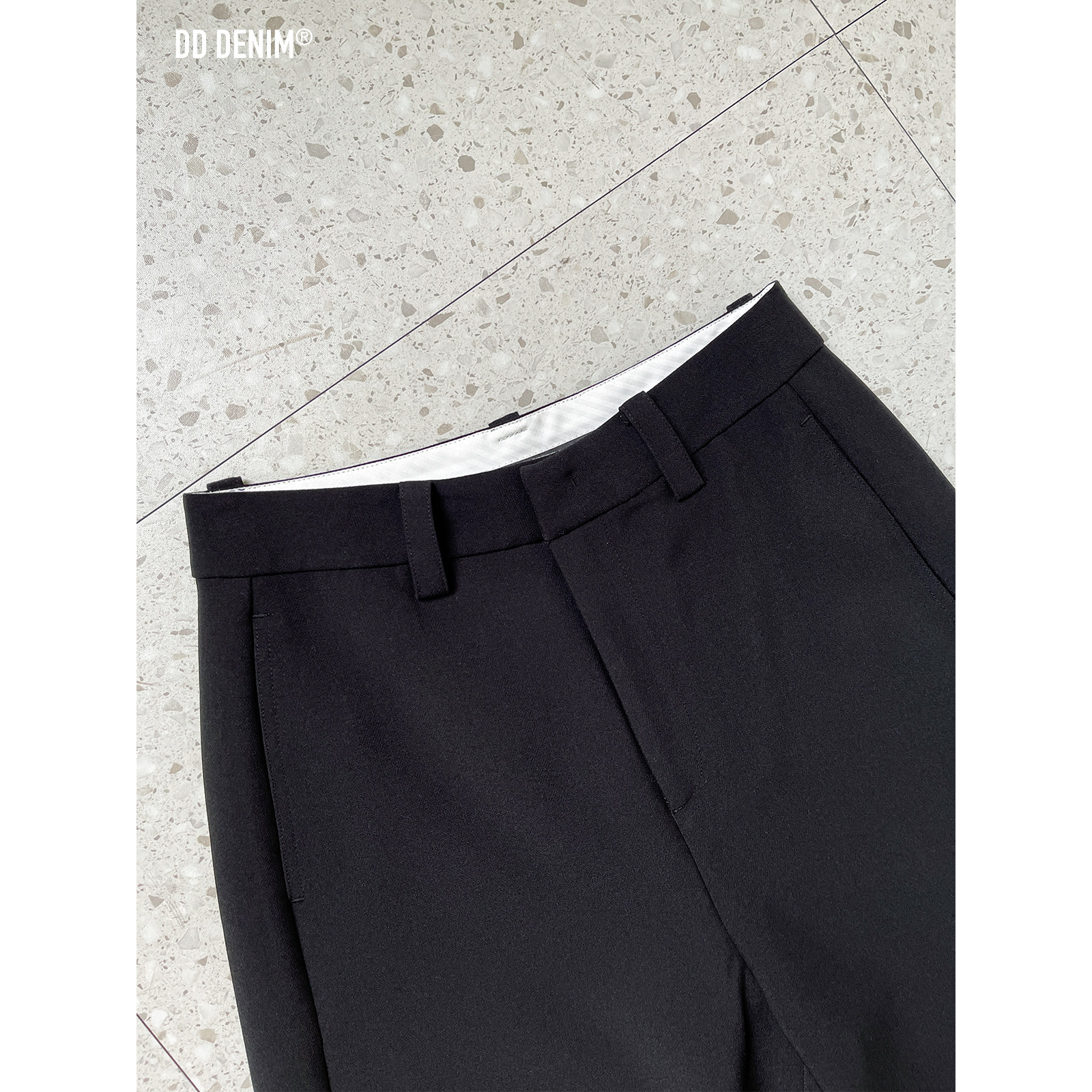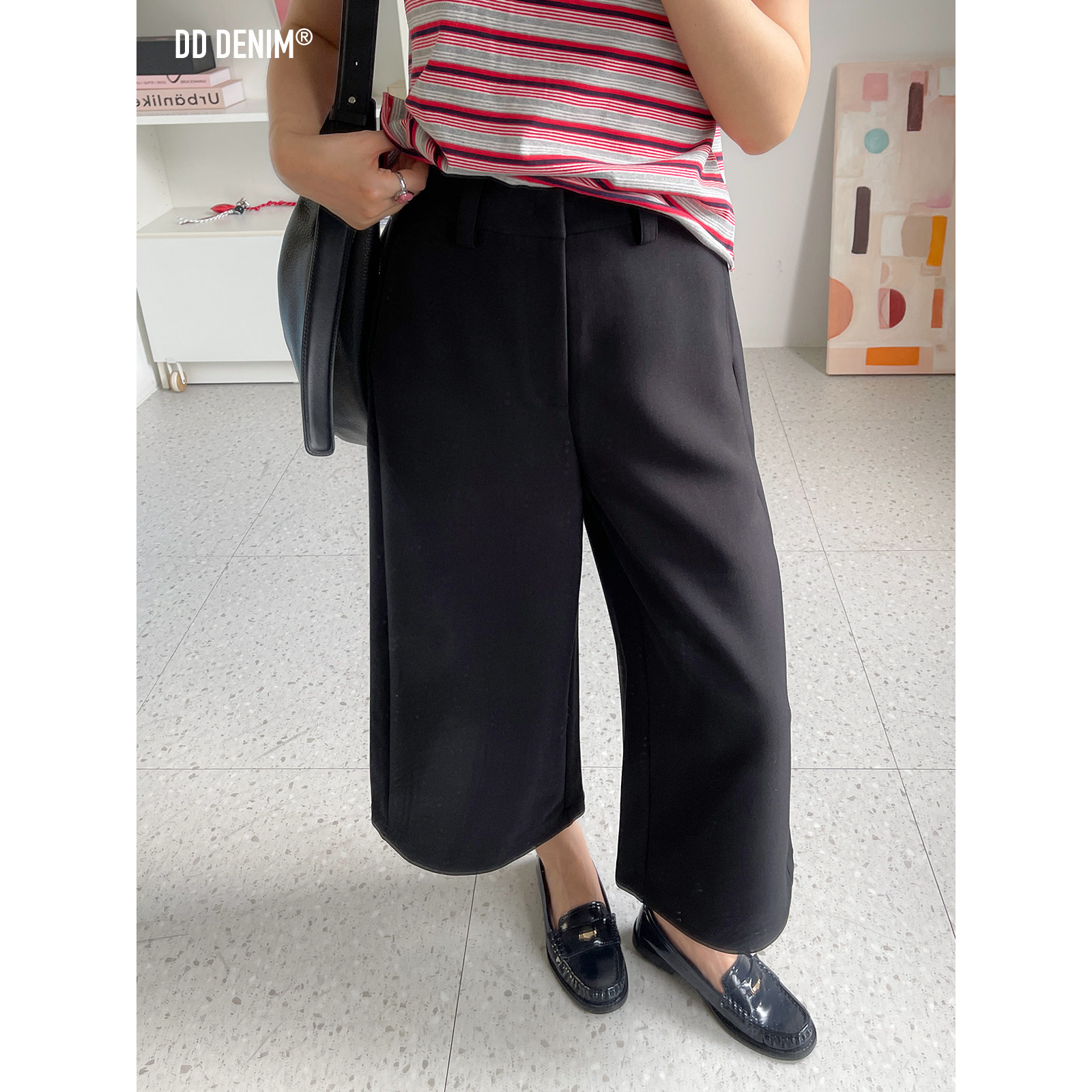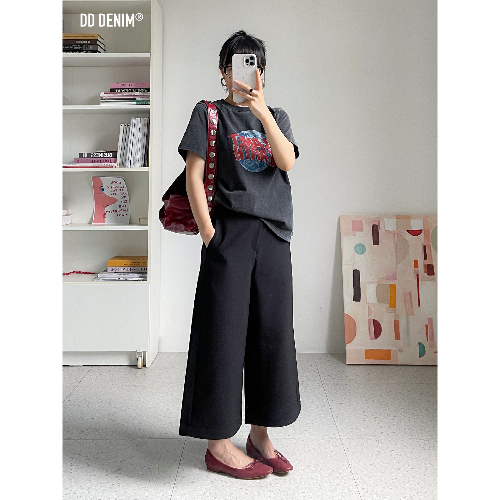 裤 DD「轻盈极简」黑色高腰弹力八分裤 垂软西装 薄款 女宽松阔腿夏季