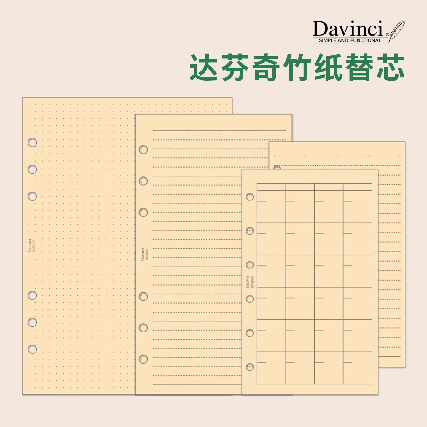 Davinci达芬奇手帐替芯 A7空白方格日程活页笔记内页芯索引垫板配件 日本Raymay藤井M5