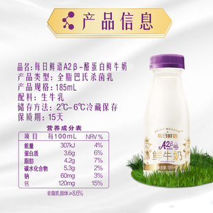 5瓶 每日鲜语鲜牛奶185ml A2β酪蛋白鲜奶185ml 百补官链