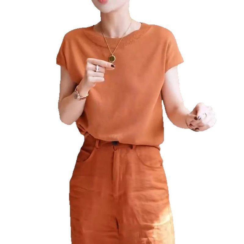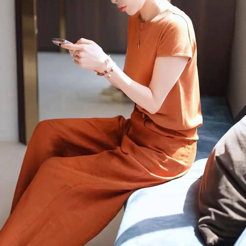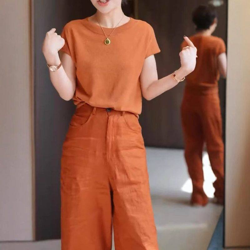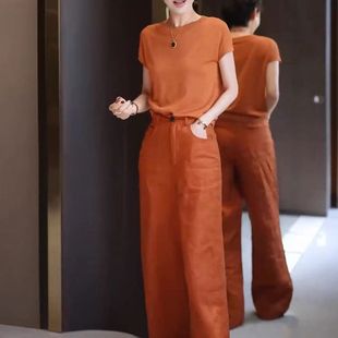 时尚 25228大爱美依缘2025夏季 T恤宽松阔腿裤 纯色圆领短袖 女潮 新款