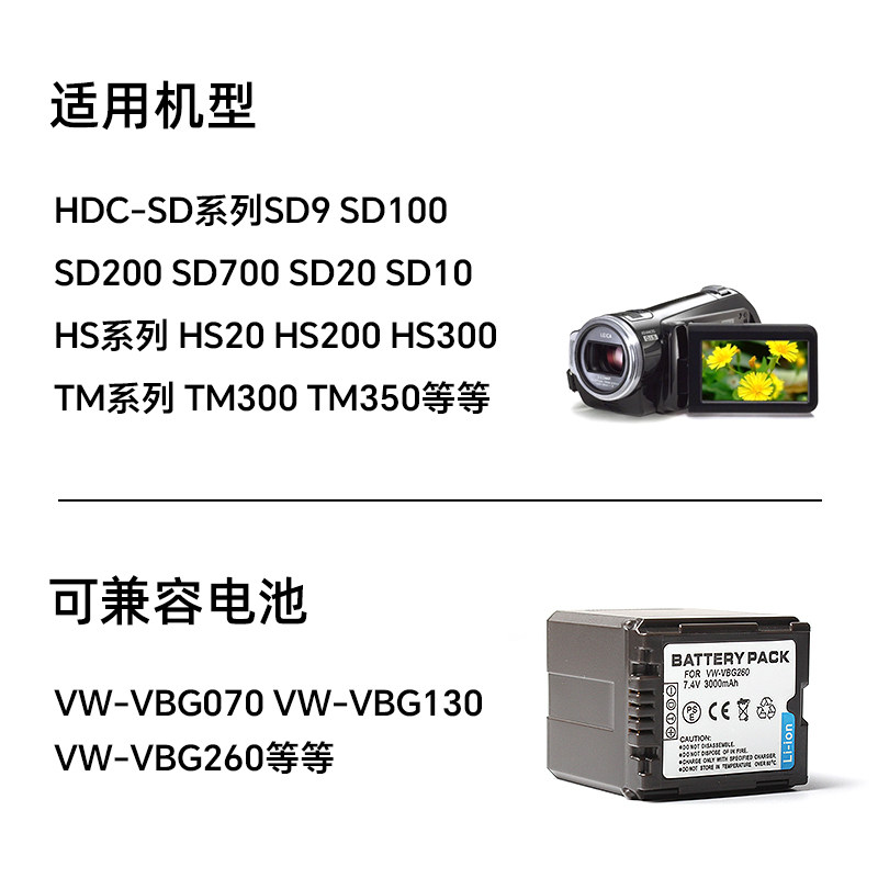 摄像机电池 HMC153 SD700 适用松下 数码 VBG260 SX5 相机电池