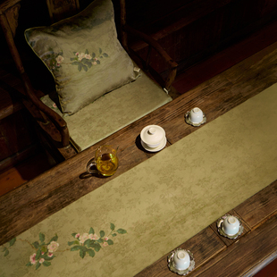 爱奇葩原创逝水云裳桌旗茶席新中式 禅意防水茶桌垫布茶几茶旗桌布