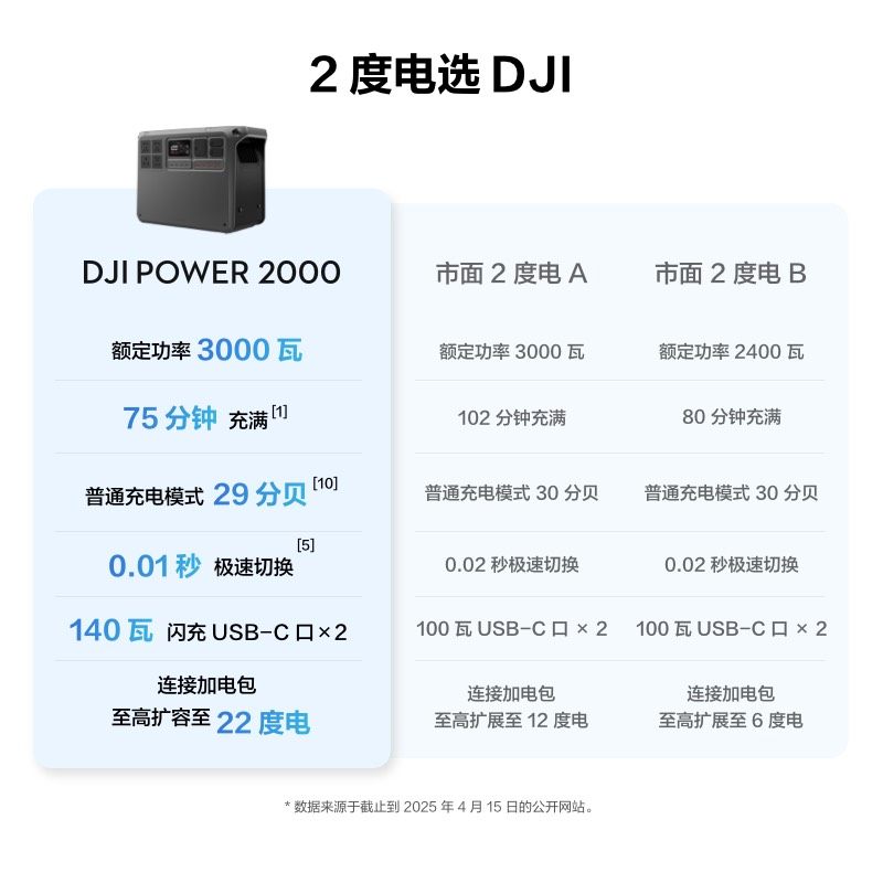 2000户外移动电源 度电220V大功率便携大容量蓄电池家用备用车载露营自驾游 大疆Power DJI