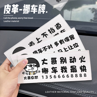 车内临时停车号码 牌挪车牌创意汽车车载移车卡 牌高级皮革停车号码