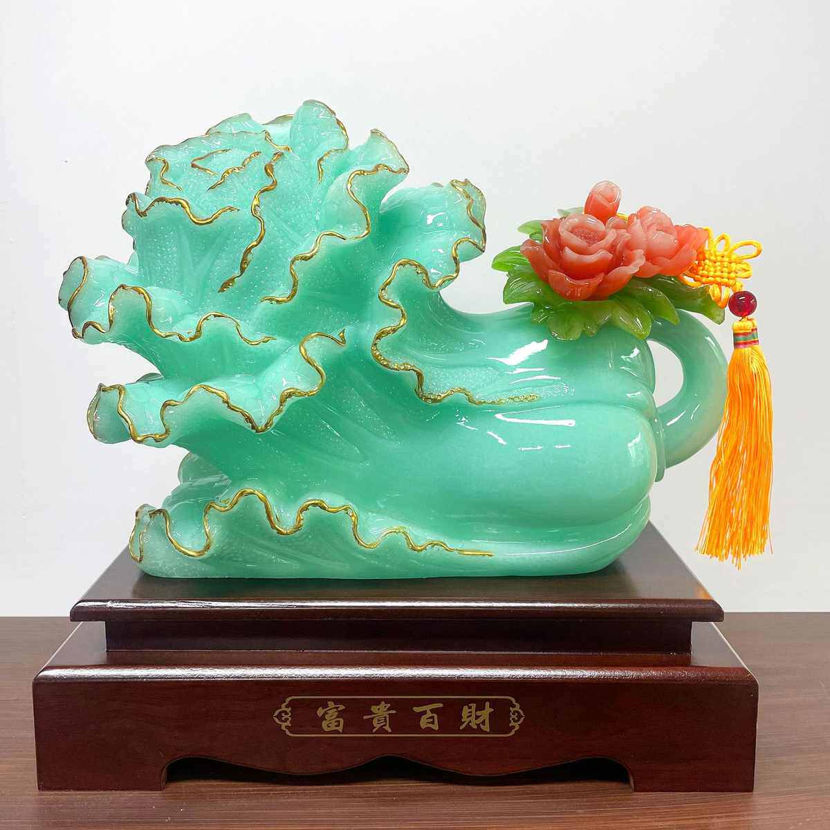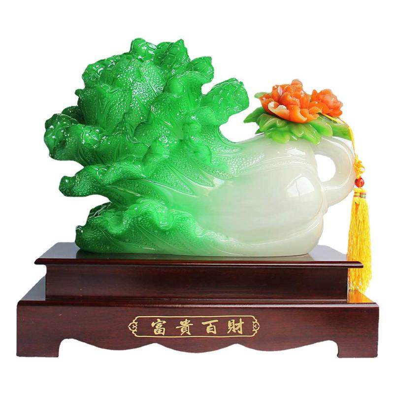 富贵百财招财玉白菜摆件家居客厅办公室桌装 饰收银台吧台开业礼品
