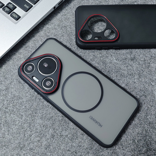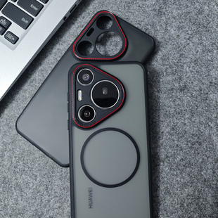 适用华为pura80手机壳pura70pro 徕卡红圈镜头半透软边高级感简约男女磁吸无线充电 全包ultra防摔pura80pro