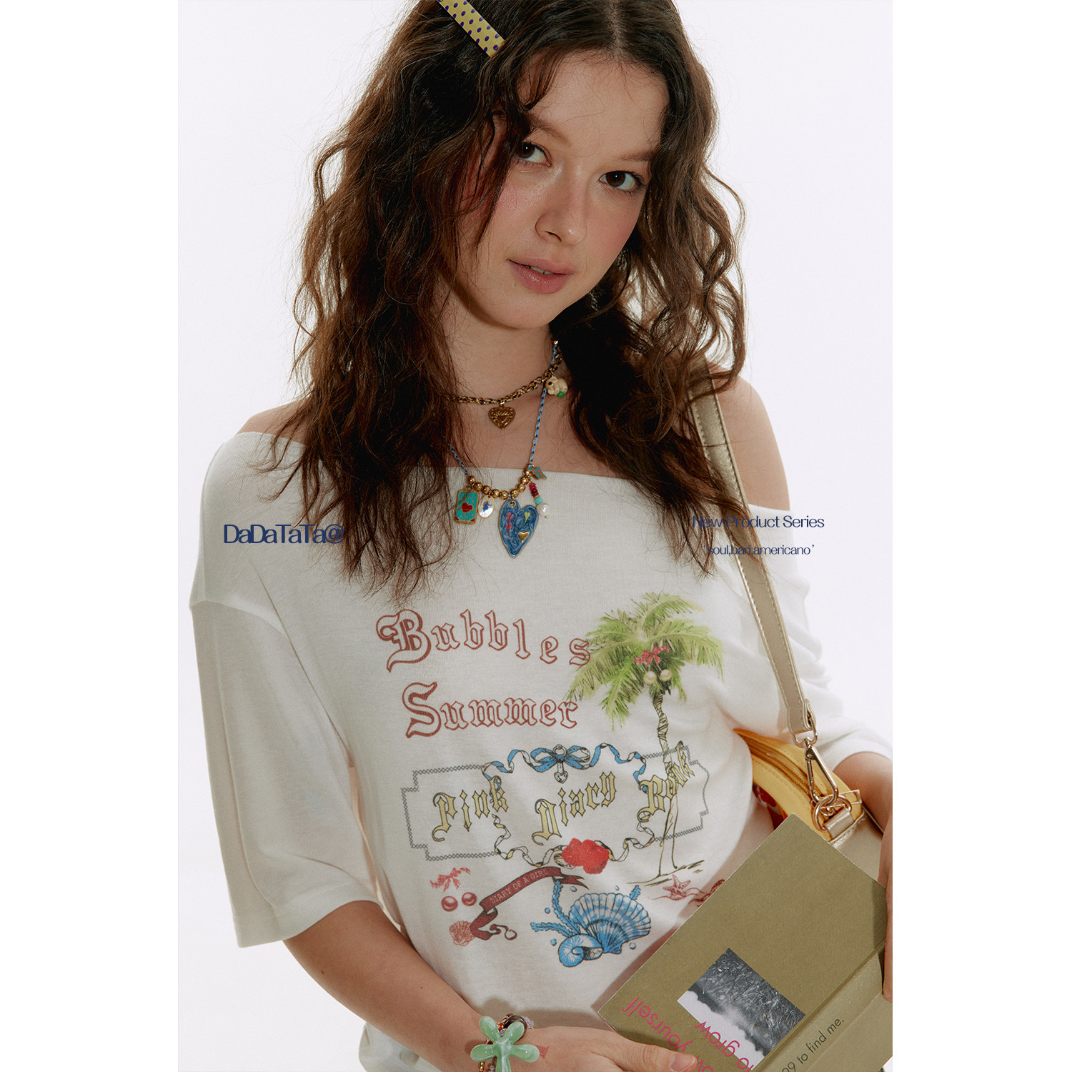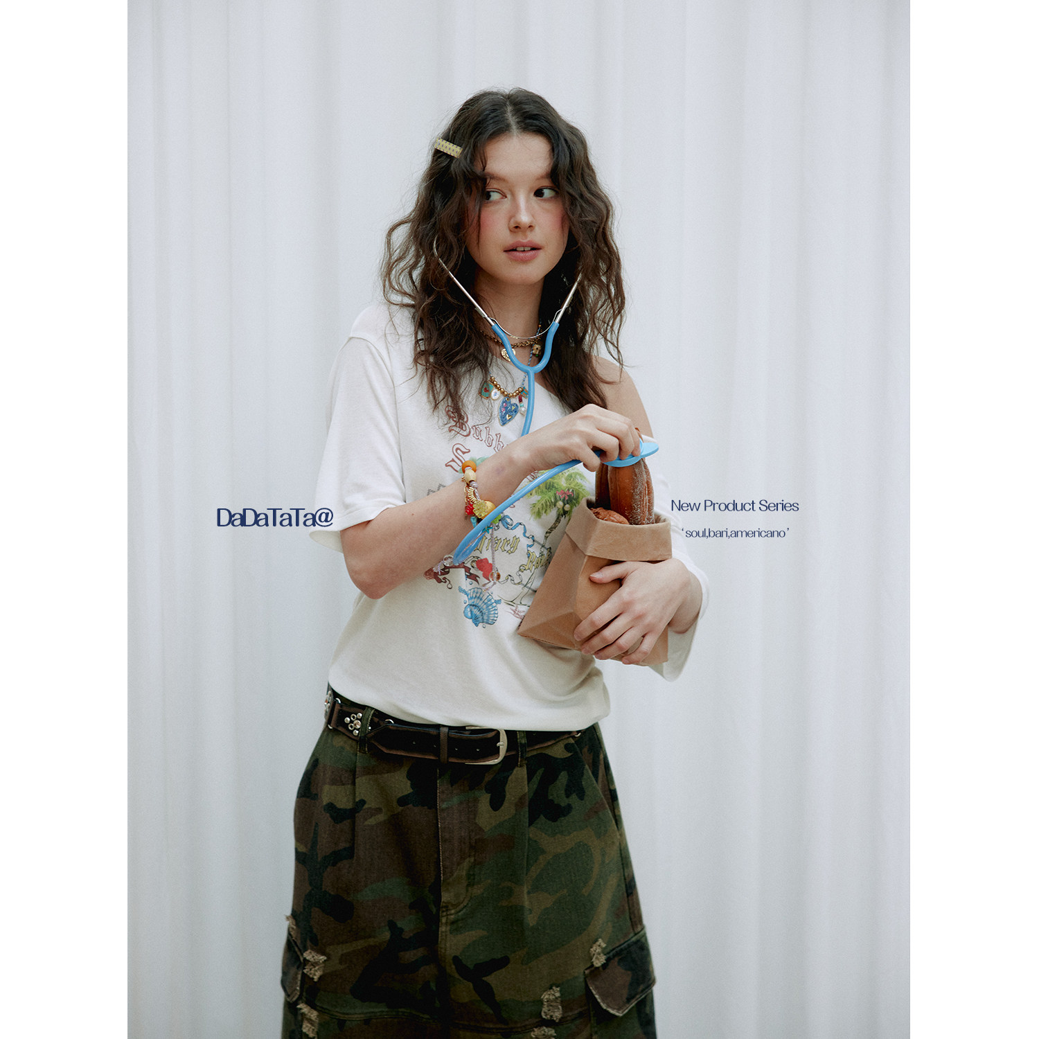 T恤设计感 莱赛尔绵羊毛甜酷风短袖 晶咕白标DADATATA 热恋岛屿
