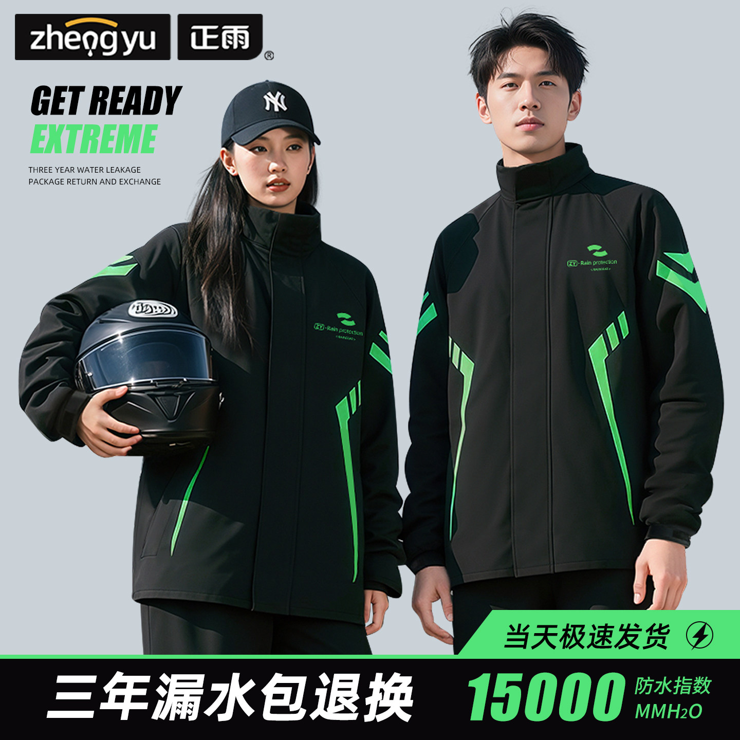 外卖骑手专用 全身防暴雨外穿成人分体式 摩托车骑行服雨衣套装 男款