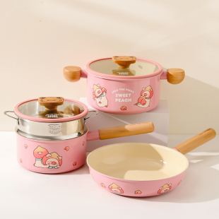 川岛屋&lulu猪联名 全套家用不粘锅煎炒锅奶锅汤锅三件套 锅组套装
