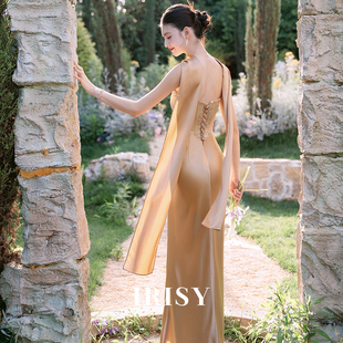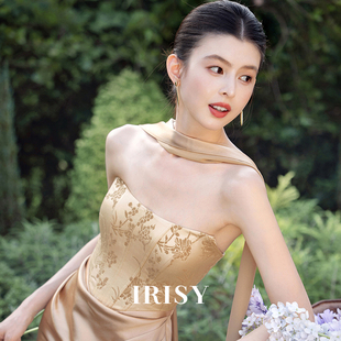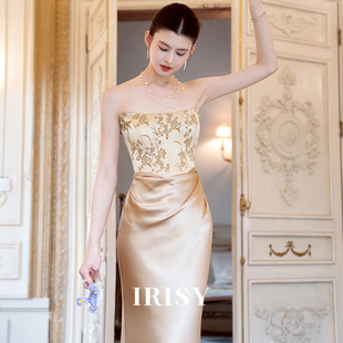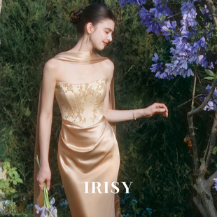 IRISY 「浮光梅影」金色抹胸订婚礼服轻奢新娘敬酒服女气质连衣裙
