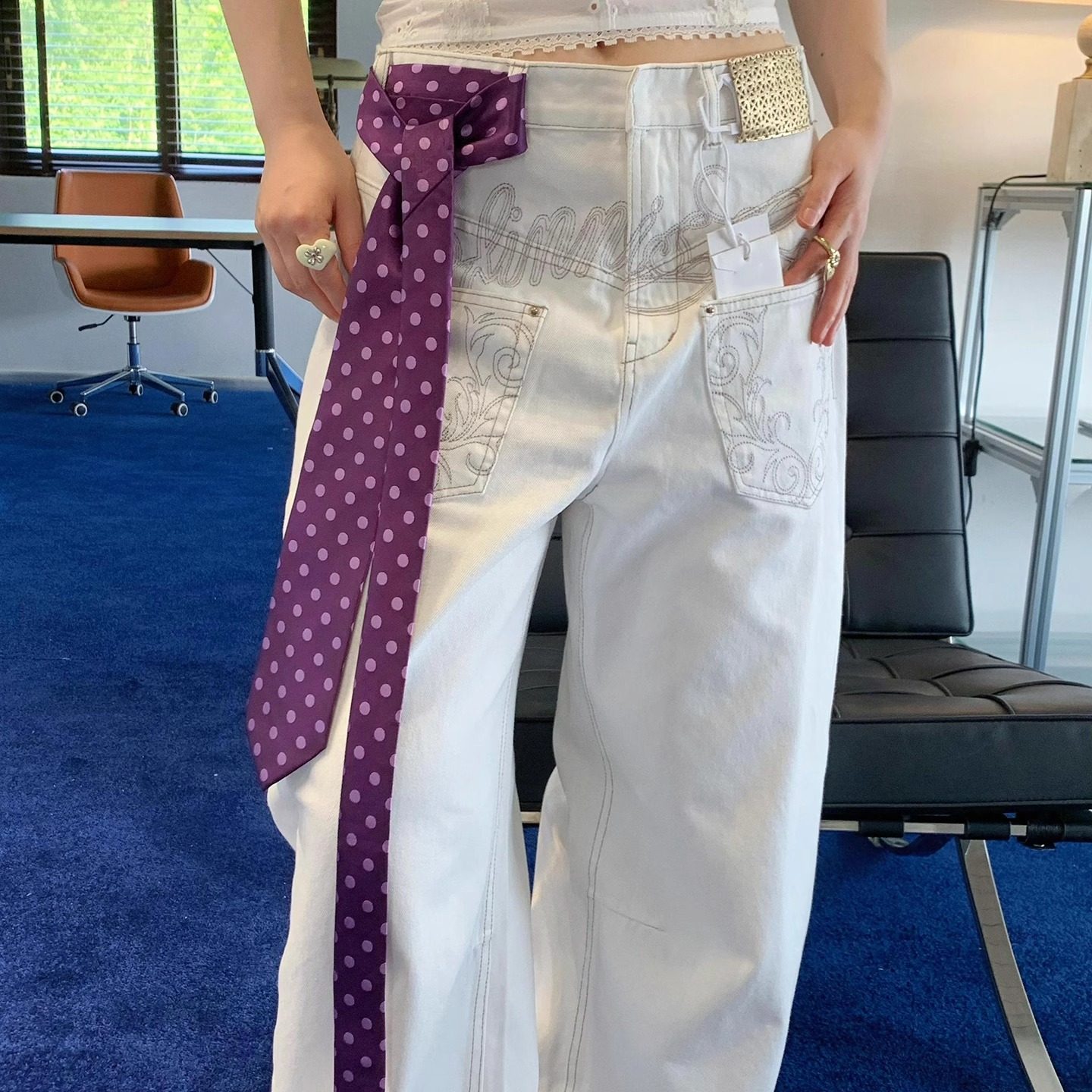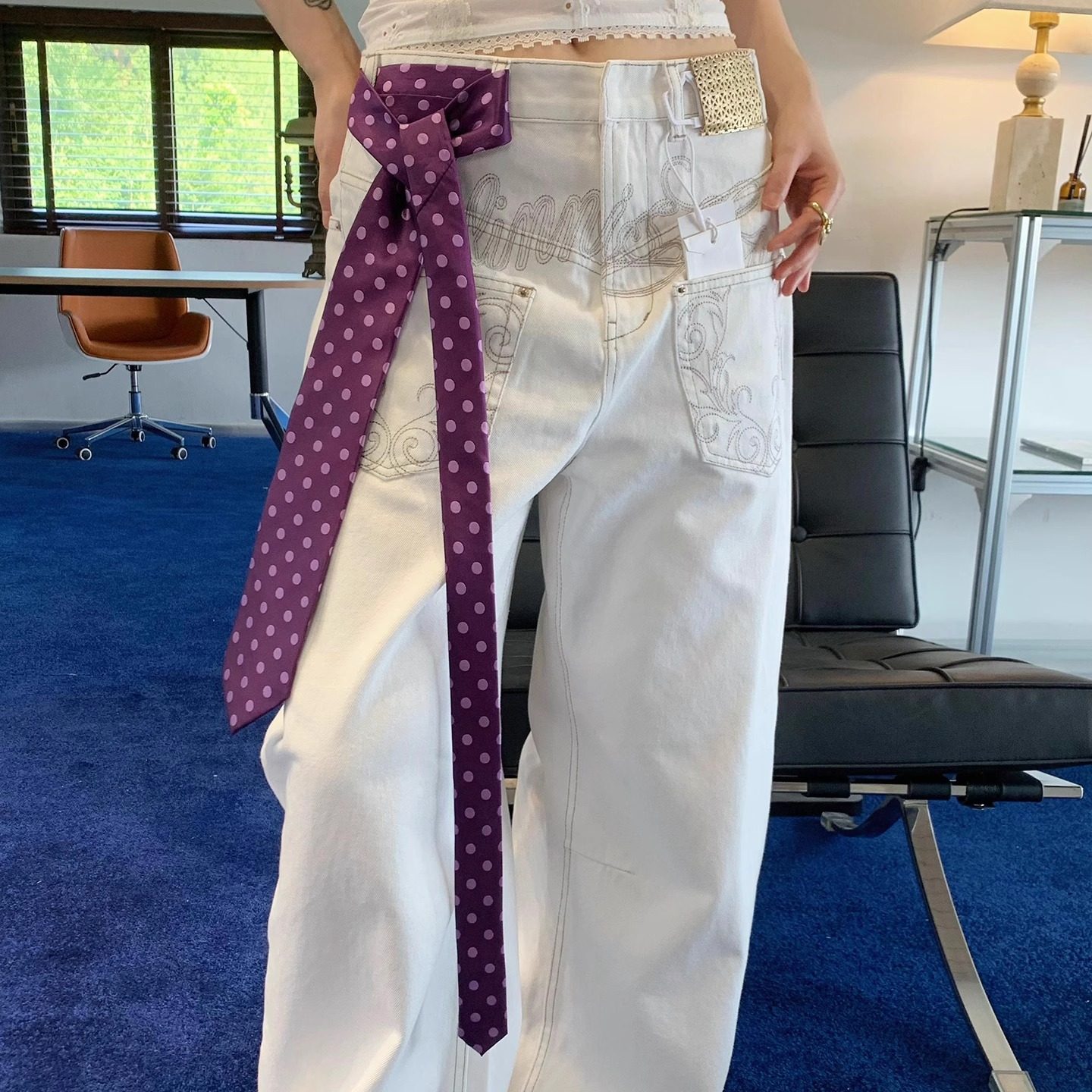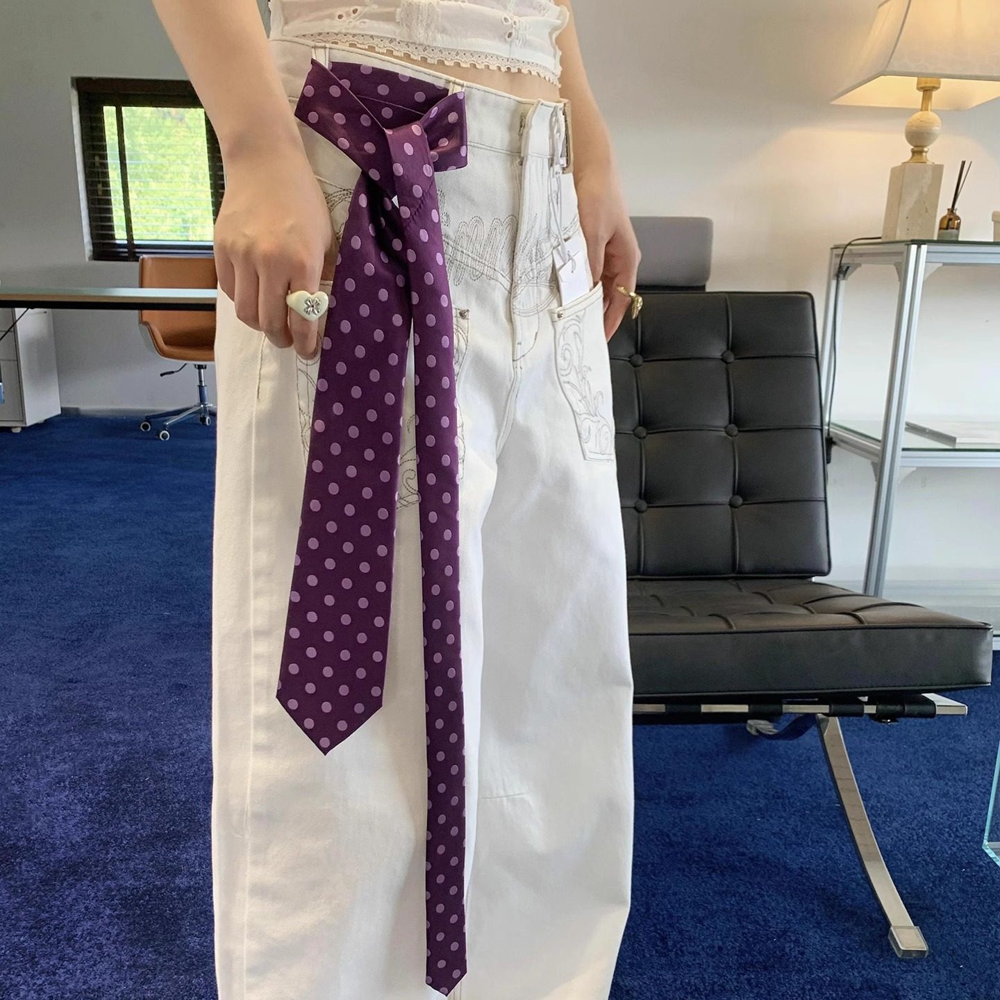 小众设计时髦复古紫色条纹领带女韩版 饰丝巾腰带配饰 多功能辣妹装