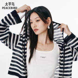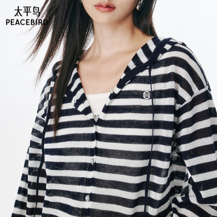 抗皱撞色条纹线开衫 休闲风连帽宽松短款 A3EDF2629 夏季 太平鸟女装
