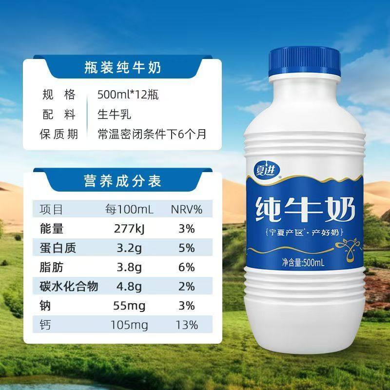 宁夏清真全脂灭菌牛奶夏进纯牛奶整箱500ml 牛奶早餐搭档 每瓶瓶装