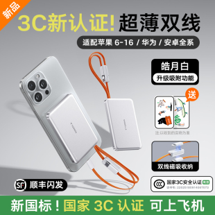 适用苹果17官方超薄小巧便携式 图拉斯磁吸自带线充电宝2026新款 快充大容量无线 充电宝3C认证可上飞机