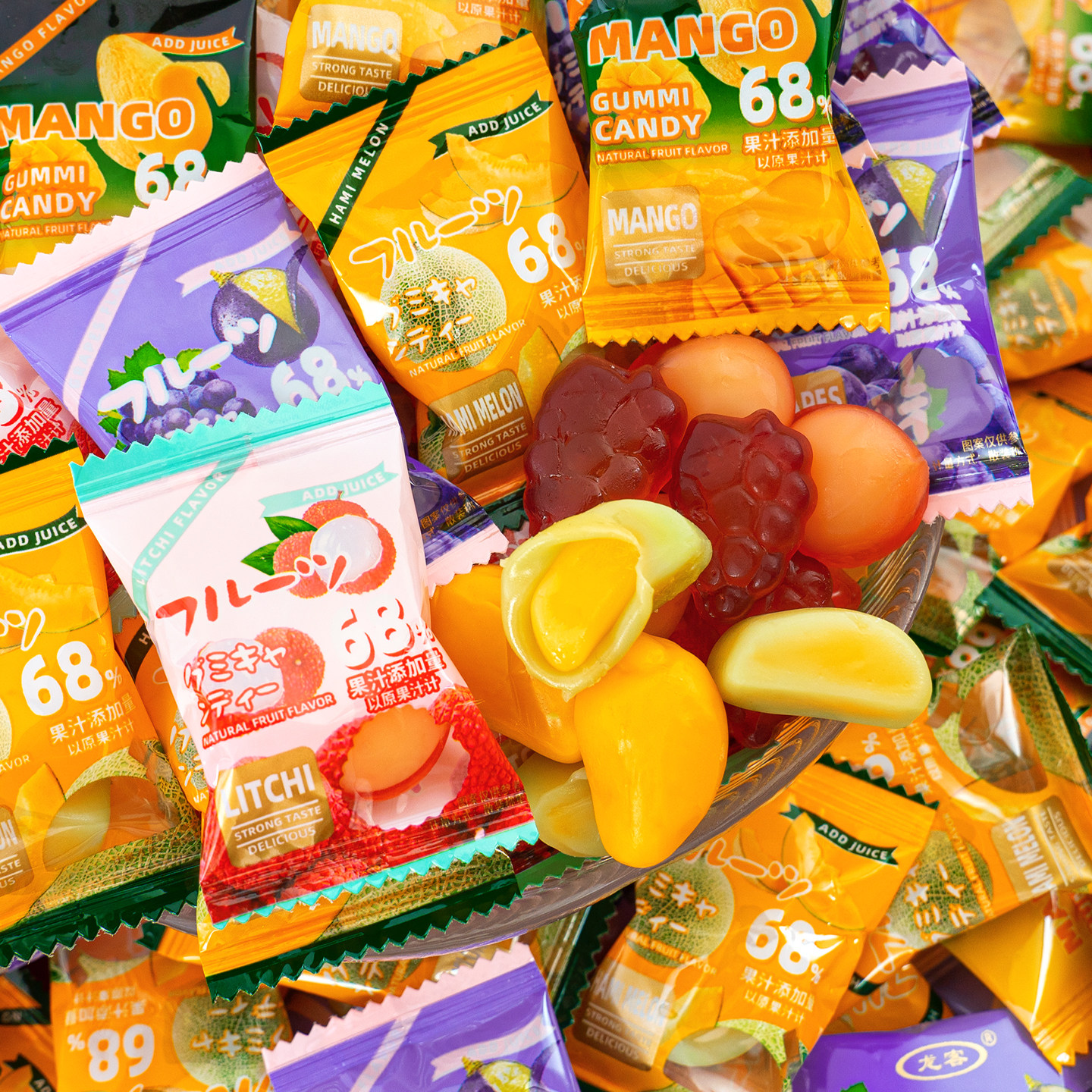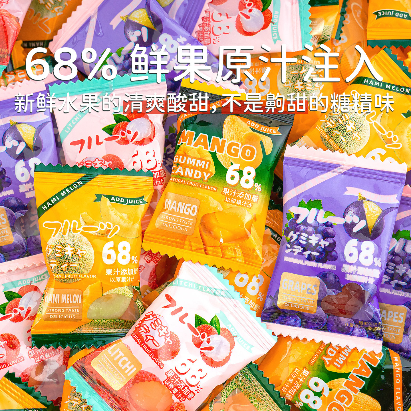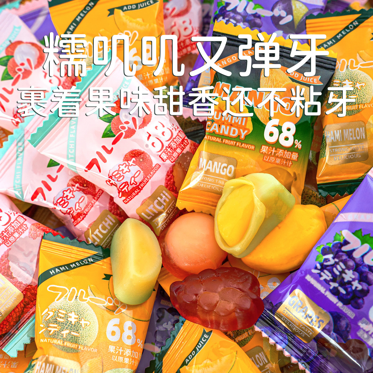夏目友人 批发QQ糖过新年 68%果汁含量剥皮软糖网红结婚喜糖果散装