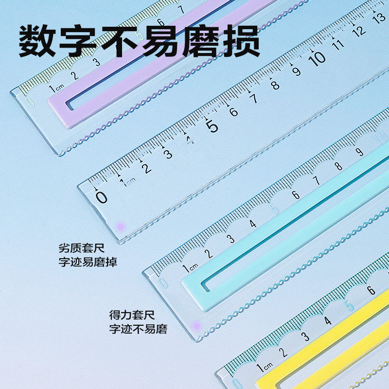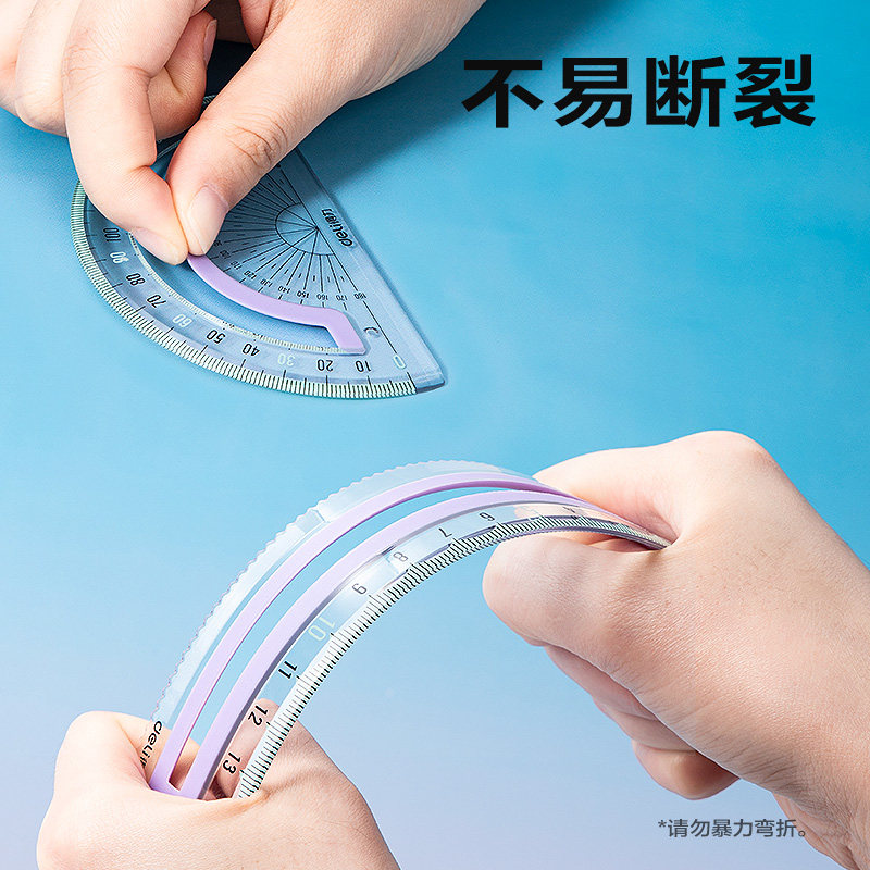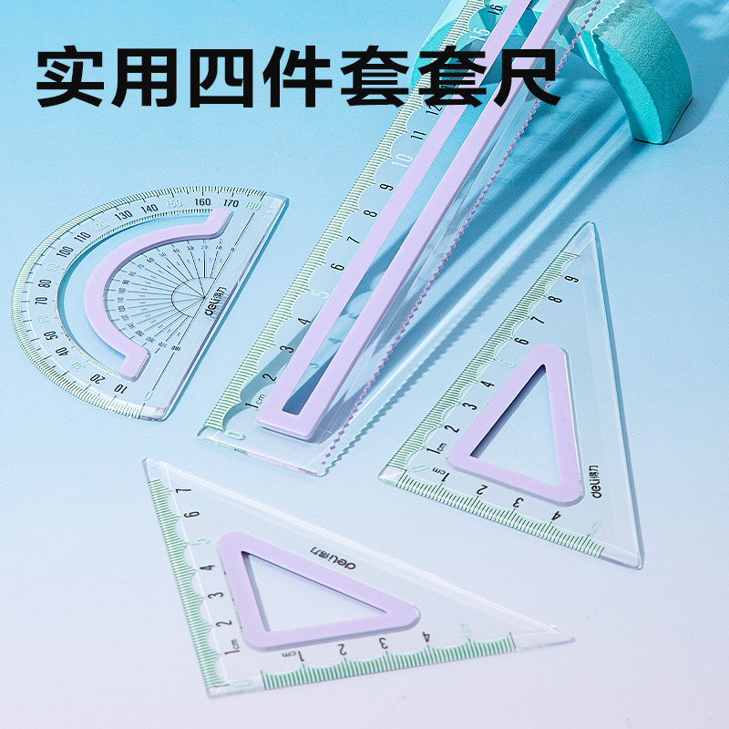 得力套尺小学生专用尺子套装 初中软直尺三角板量角器防滑多功能尺子透明20cm考试图形绘图四件套一二年级15cm