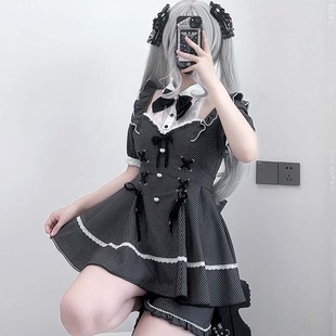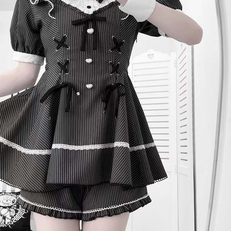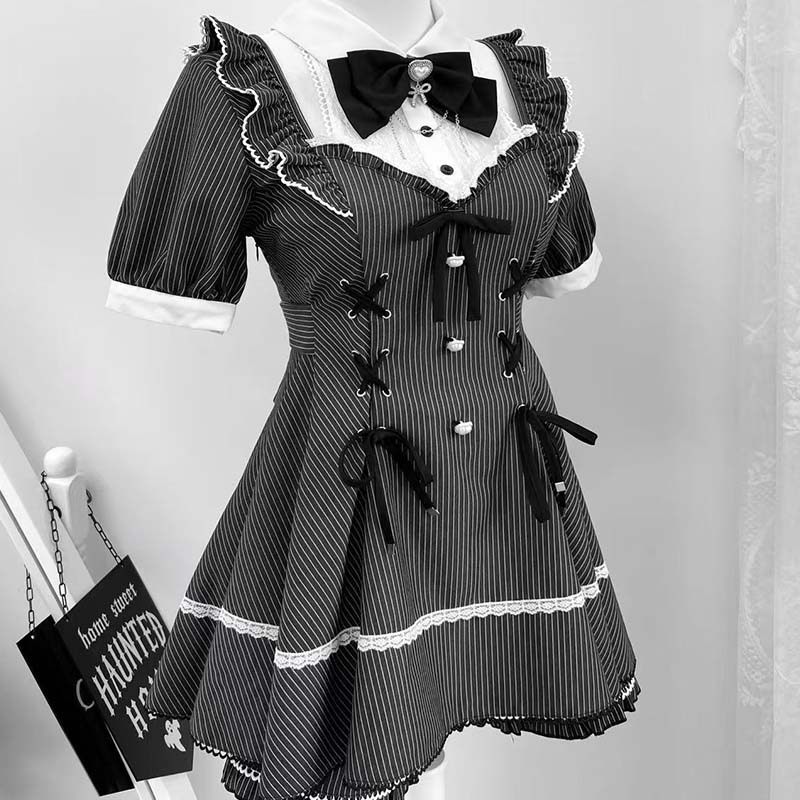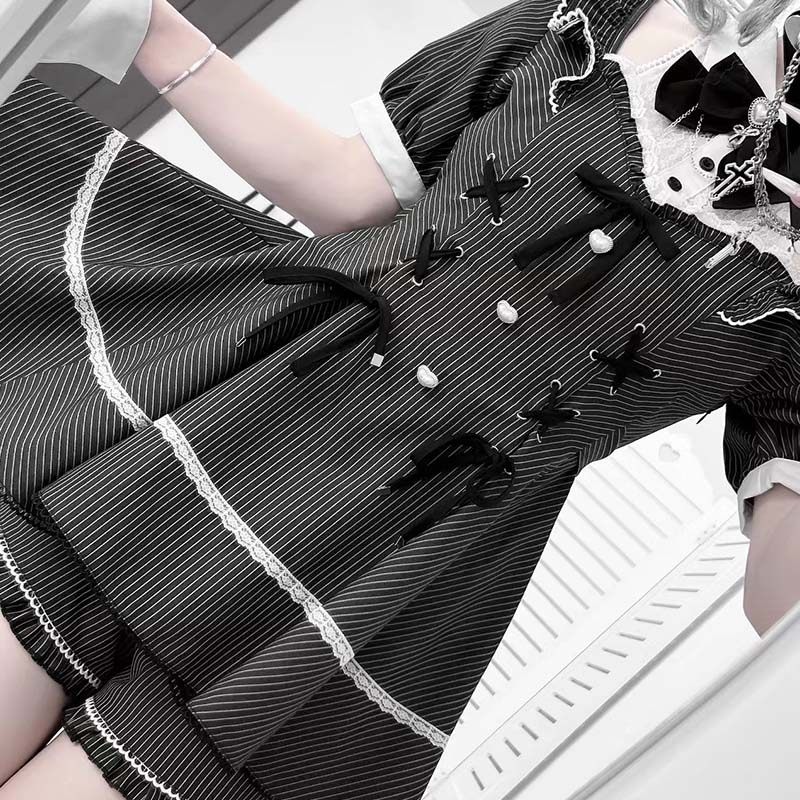 氛围元 蕾服国牌系带蕾丝 气罗曼琴弦条纹蕾服长收腰量产型服大码