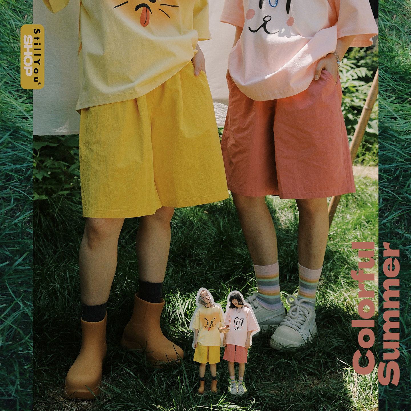 STILLYOU自制百搭彩色多巴胺机能休闲五分裤 女宽松直筒速干沙滩裤