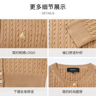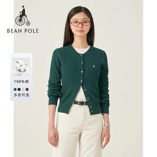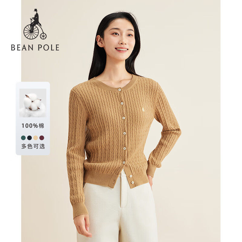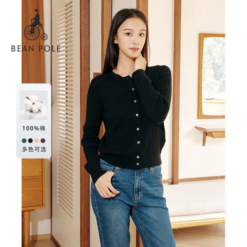 毛衣 BEANPOLE滨波秋冬女绞花纹匹马棉圆领复古开襟针织衫 新品