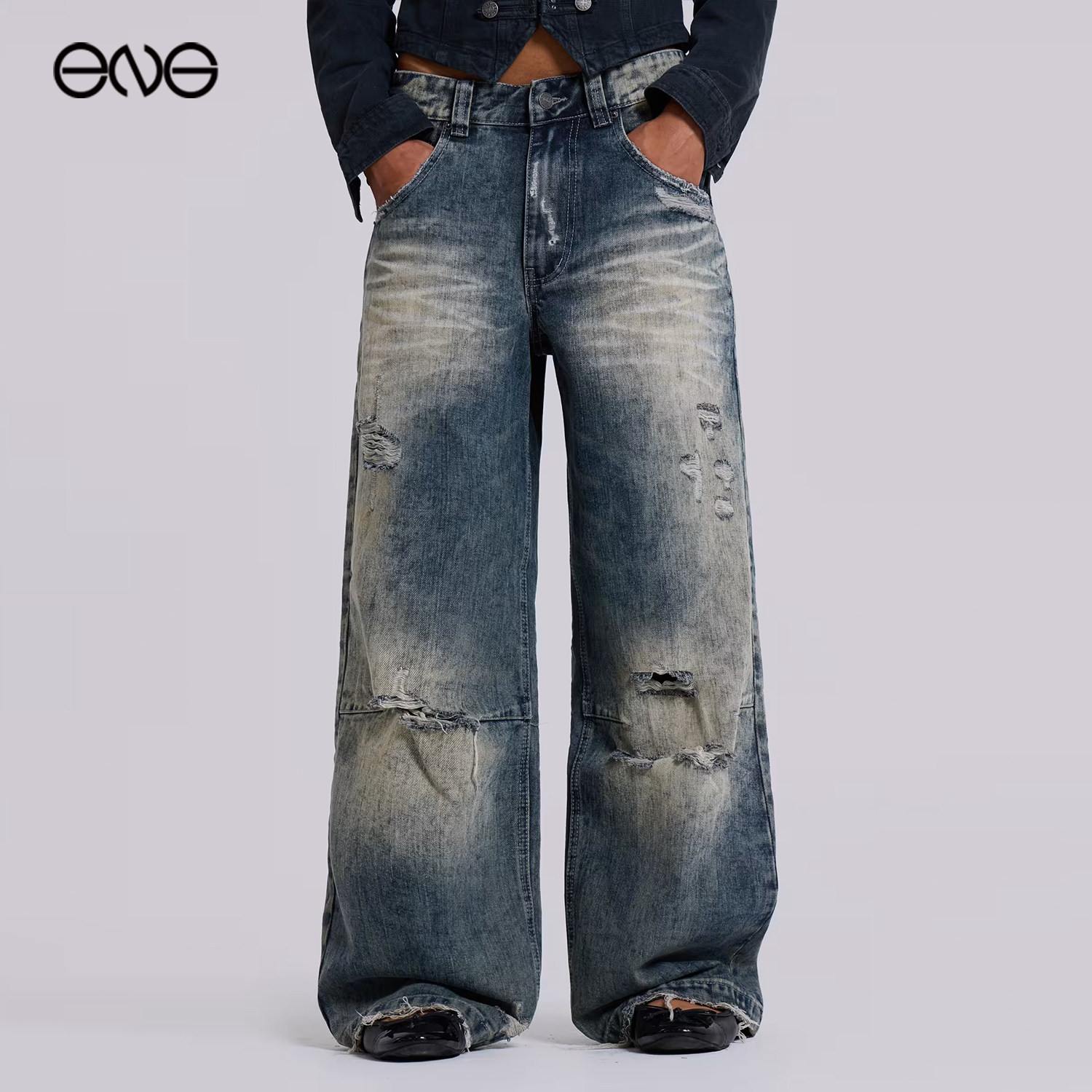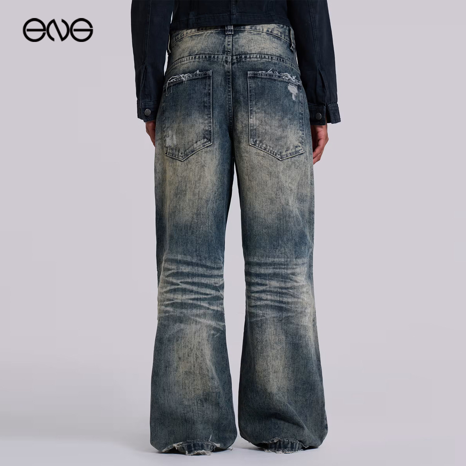 男复古街头宽松百搭阔腿长裤 悟空有货潮牌美式 cleanfit弯刀牛仔裤