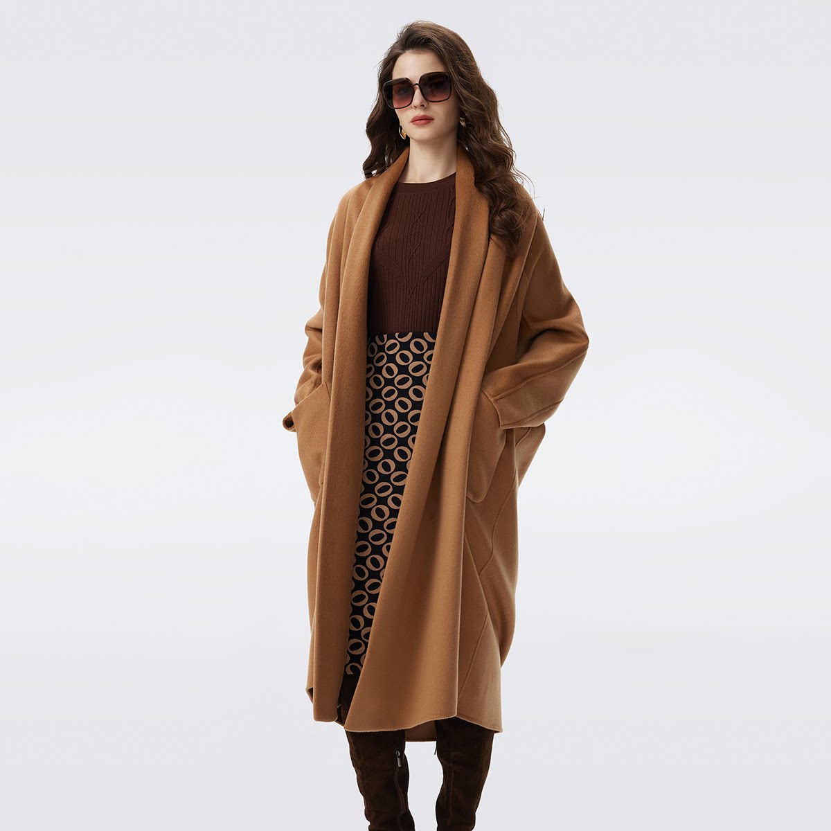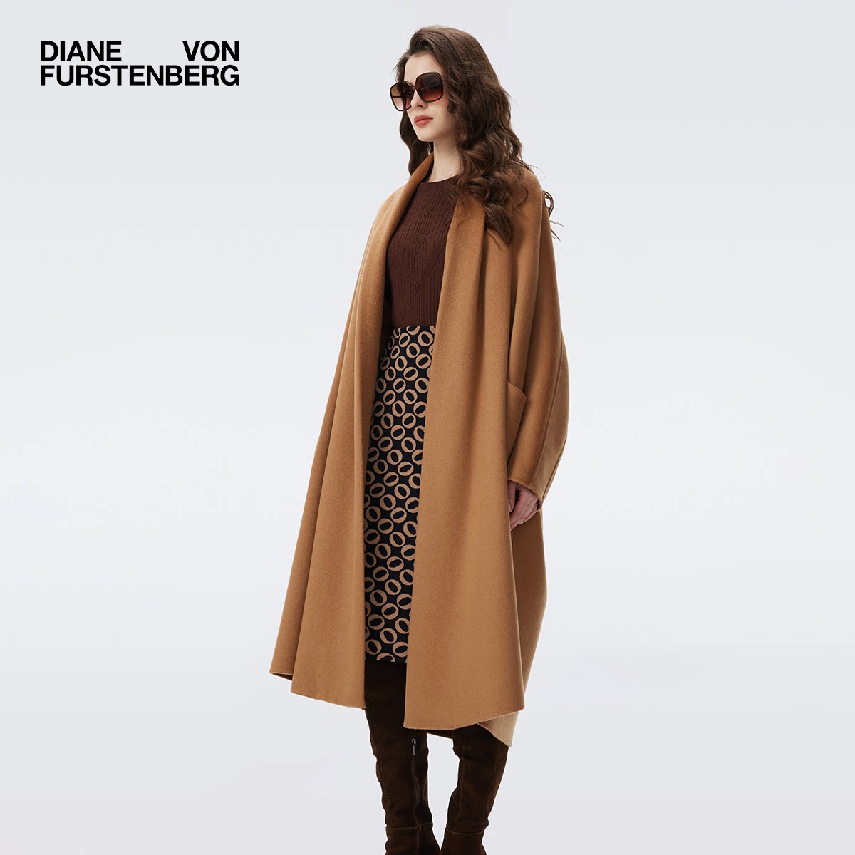 DVF毛呢羊毛沙漠驼大衣外套CL3T004