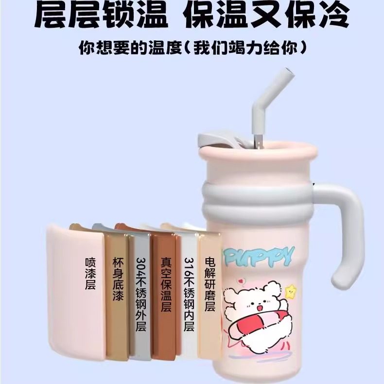 拉布布保温杯高颜值Labubu便携把手吸管水杯可爱学生双饮冰霸杯