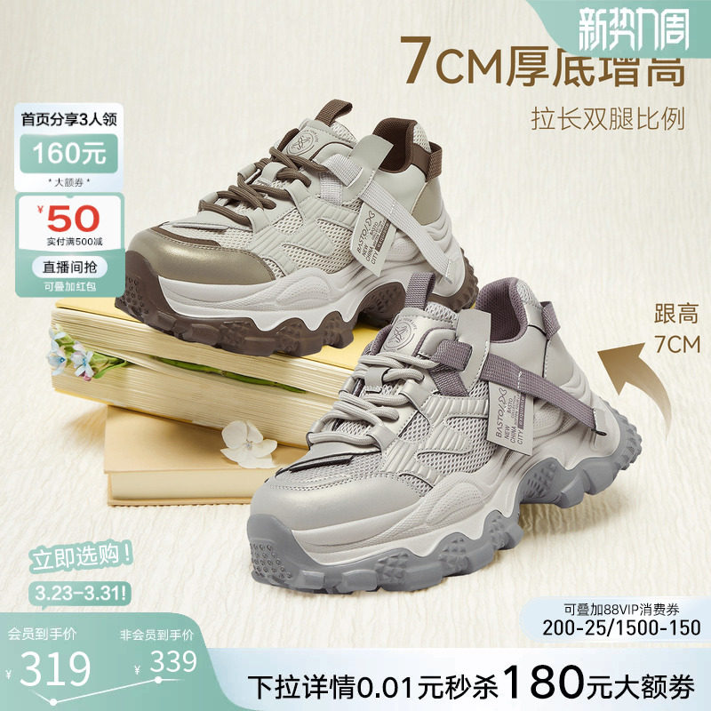 休闲鞋 厚底小个子增高女运动鞋 B6091AM6 老爹鞋 百思图26春商场新款