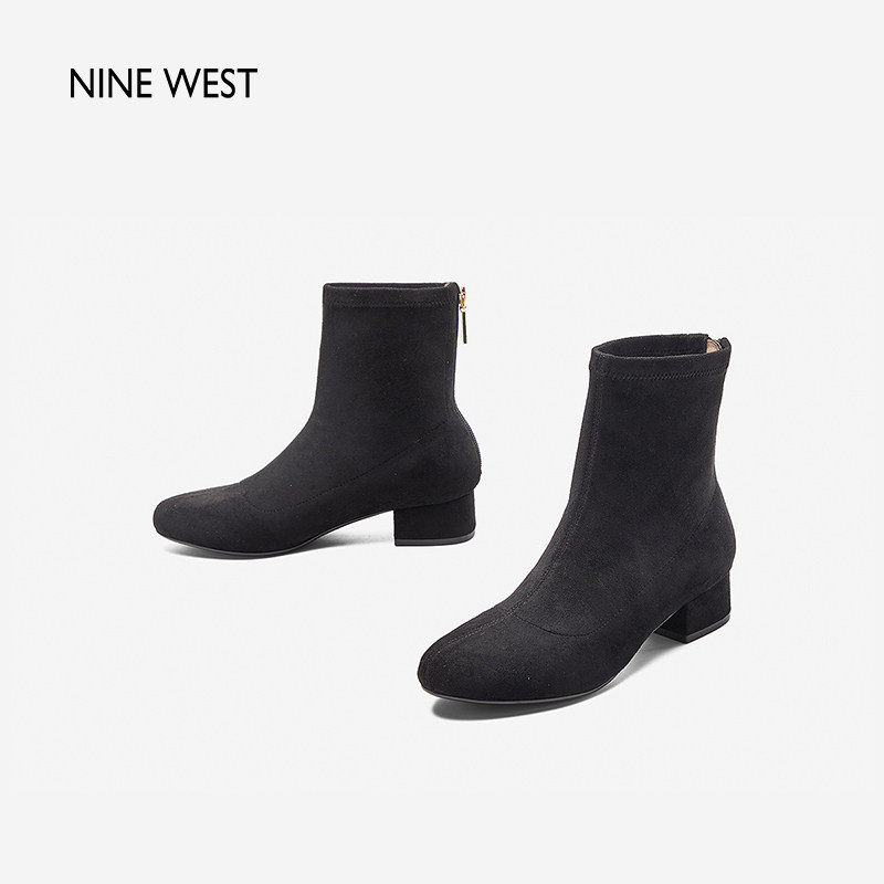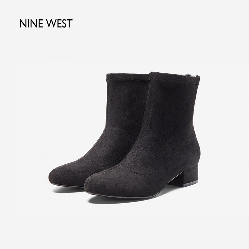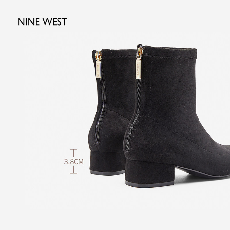 清仓款 玖熙冬季 瘦瘦靴女粗跟简约大气圆头复古短靴百搭 West Nine