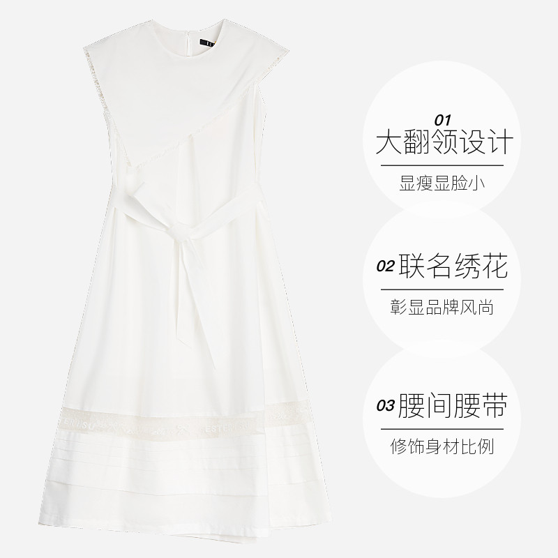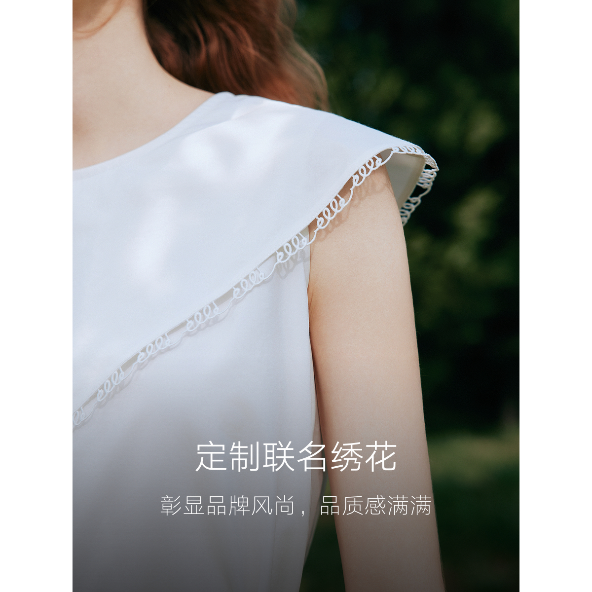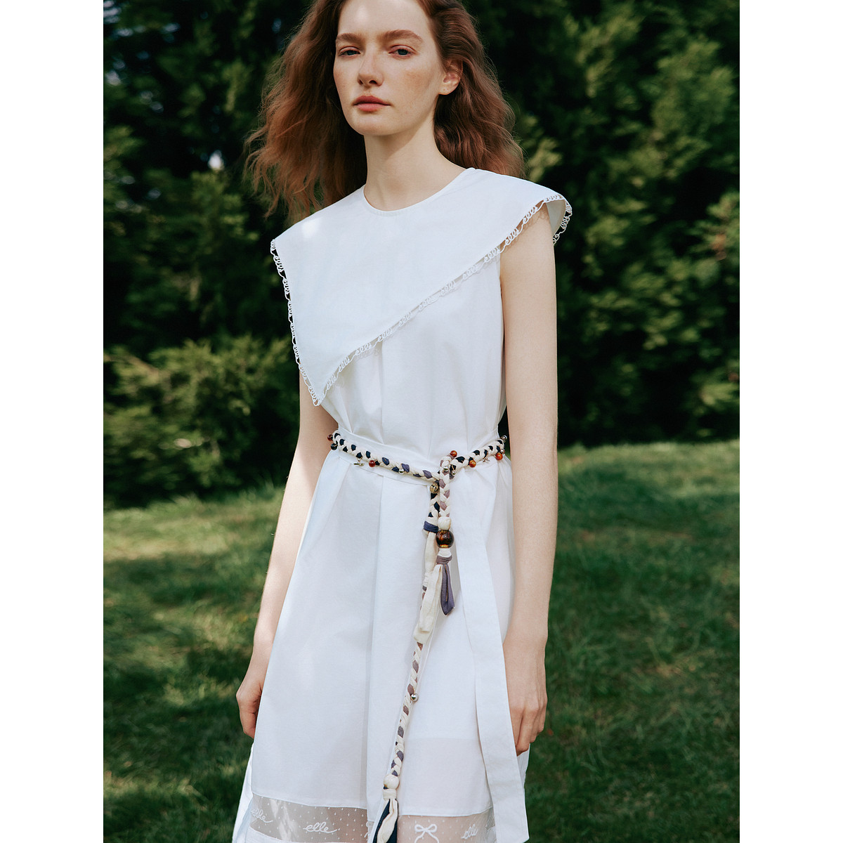 ELLE白色绣花连衣裙女2025夏新款 HSU ESTER 优雅a字裙 自营