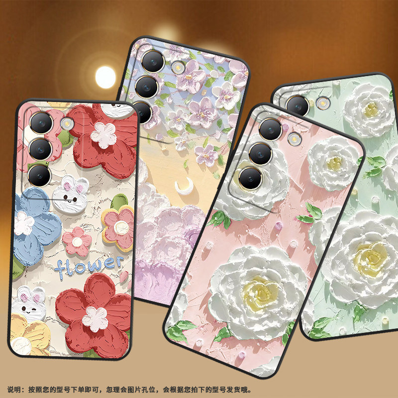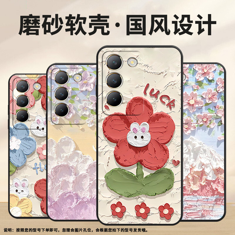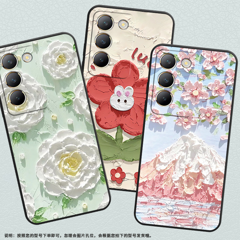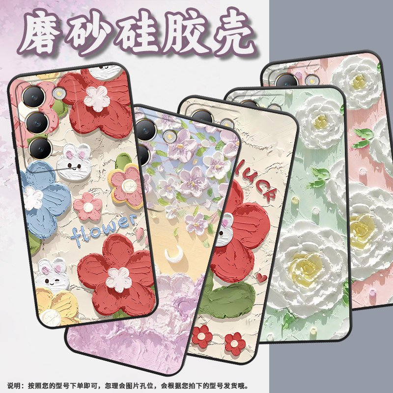 适用vivoY200手机壳Y200E保护壳Y200GT全包边Y200 轻奢耐磨 磨砂壳V2361GA油画花朵樱花雪山潮流超薄男女款