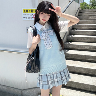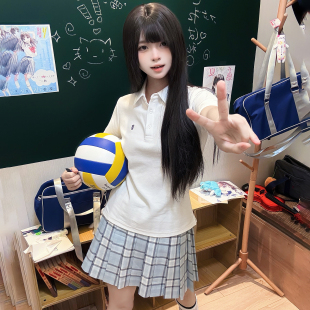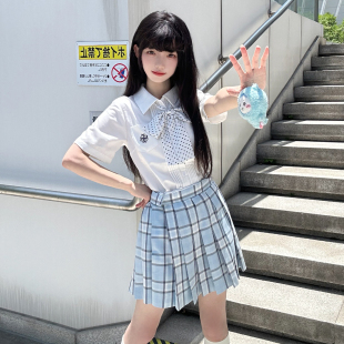 花千猪原创 jk制服校供感a字型百褶裙蓝白格百搭jk裙 冰冰椰格裙