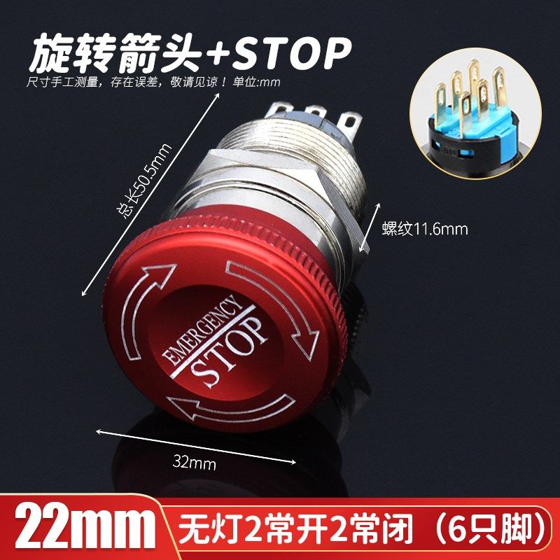 金属塑料紧急停止按钮开关16 22mm蘑菇头Stop三脚六脚接插针脚