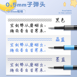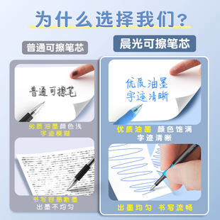 晨光热可擦按动式 中性笔笔芯0.5mm子弹头弹簧按压墨蓝黑色魔力擦水性替换芯晶蓝色摩易擦大容量笔心学习用品