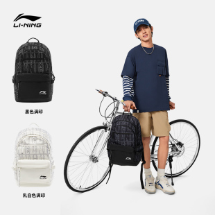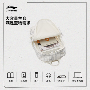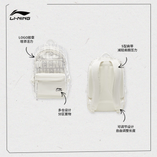 李宁双肩包男女士正品 大容量轻便学生白色书包旅游通勤运动背包