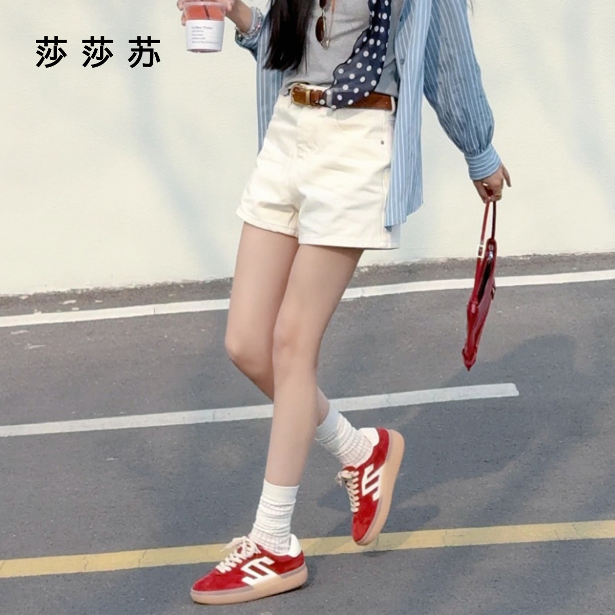 马卡龙增高轻便安可拉红色运动德训鞋 莎莎苏春夏新款 女 明星同款