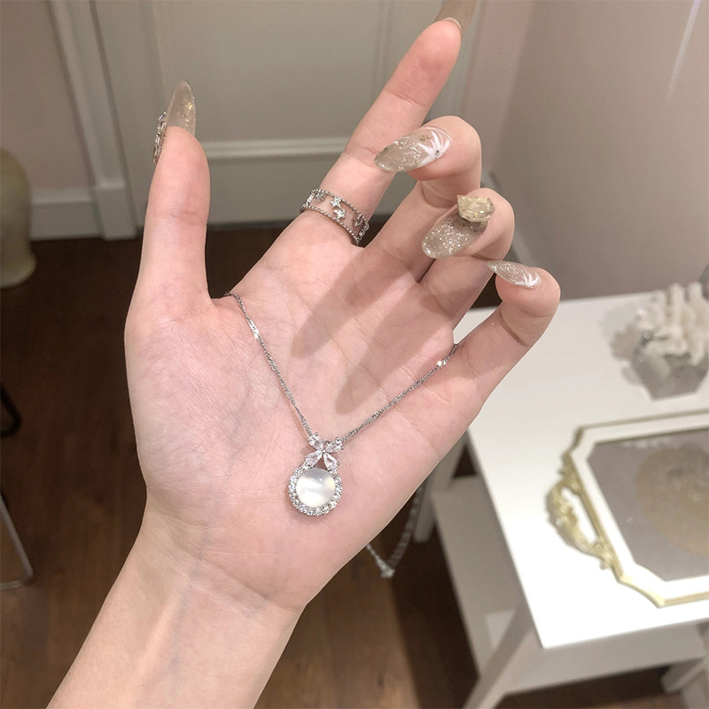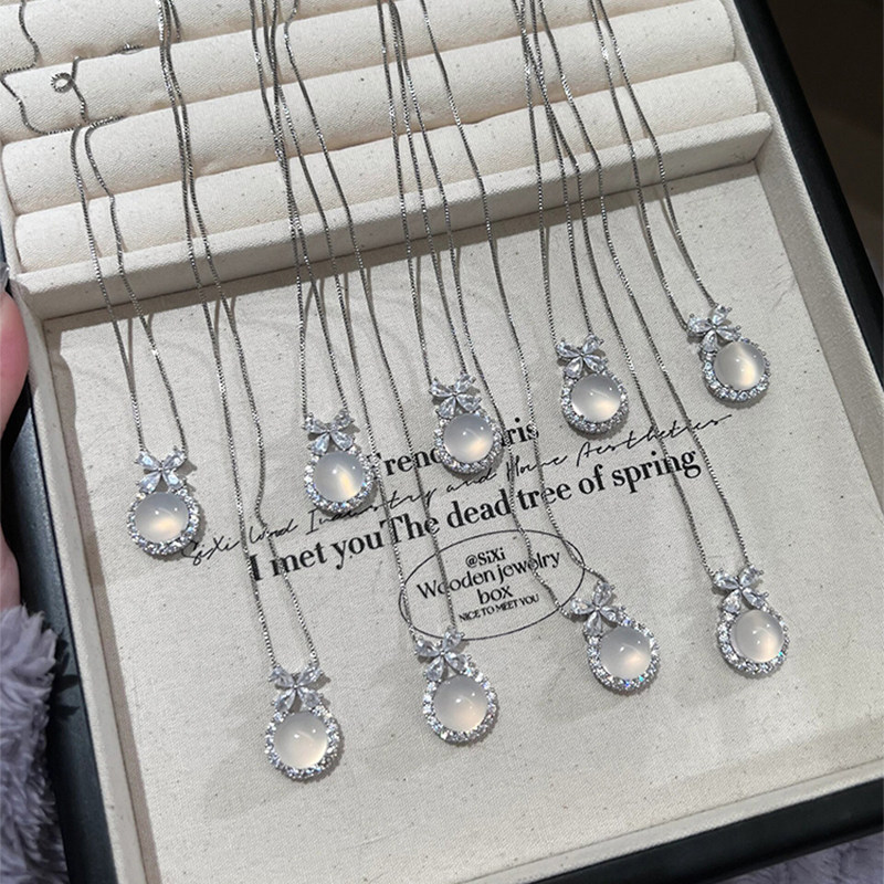S925纯银冰透白玉髓吊坠项链轻奢小众精致高级感锁骨链女2025新款