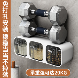 调味盒家用厨房收纳置物架壁挂式 免打孔盐味精佐料调料罐多格一体