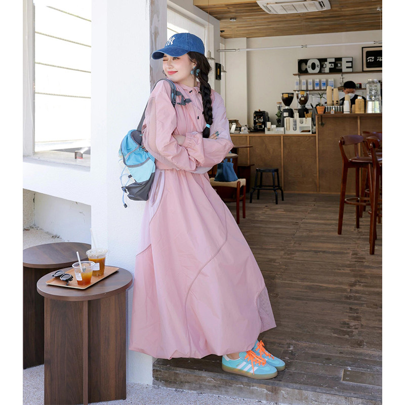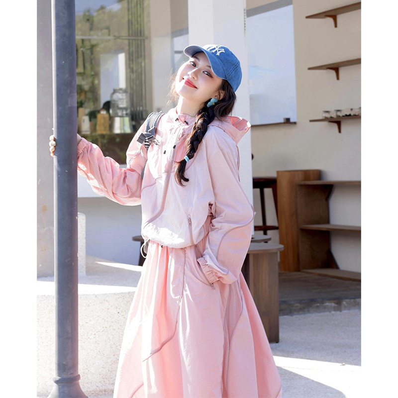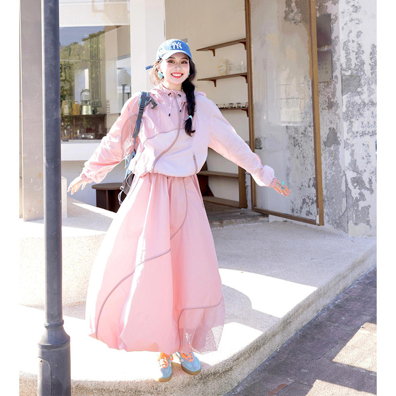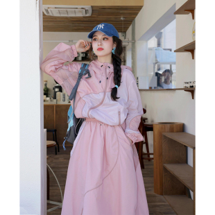 多巴胺粉色减龄运动套装 炸街洋气宽松防晒外套半身裙两件套 女夏季