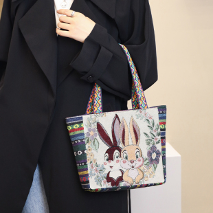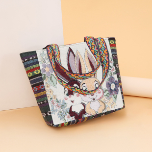 手提袋女包外出帆布包双面休闲卡通绣花大容量手提包民族风小方包