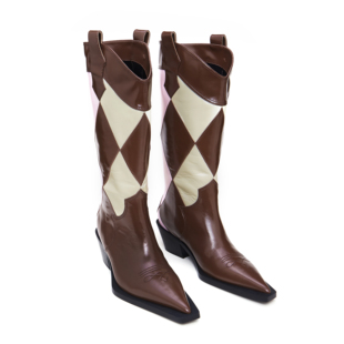 靴皮靴 时装 吴宣仪天美意千金靴复古厚底骑士靴加绒长靴女鞋 子新款