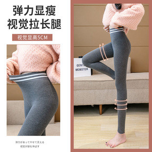 完美记忆灰色打底裤 袜 女秋冬外穿黑色竖纹压力显瘦加厚绒保暖连裤