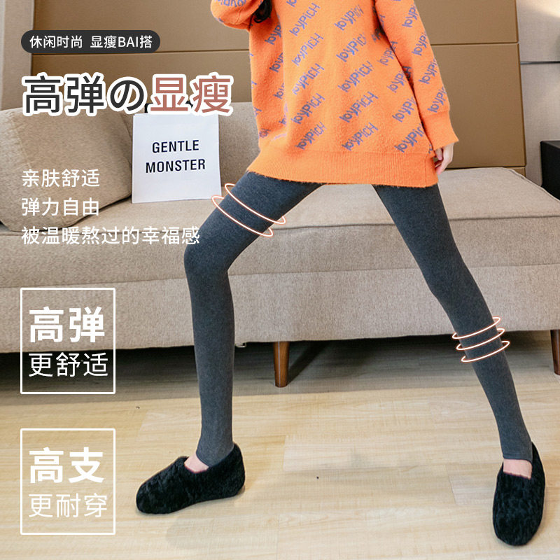 压力显瘦黑色秋冬加绒保暖薄绒连裤 外穿新款 袜 女秋薄款 灰色打底裤
