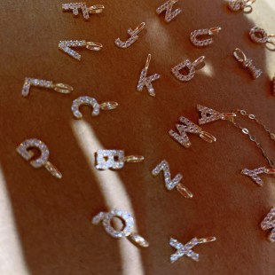 首尔k金轻奢珠宝 纯14K金锆石镶嵌字母吊坠项链配饰礼物手链坠