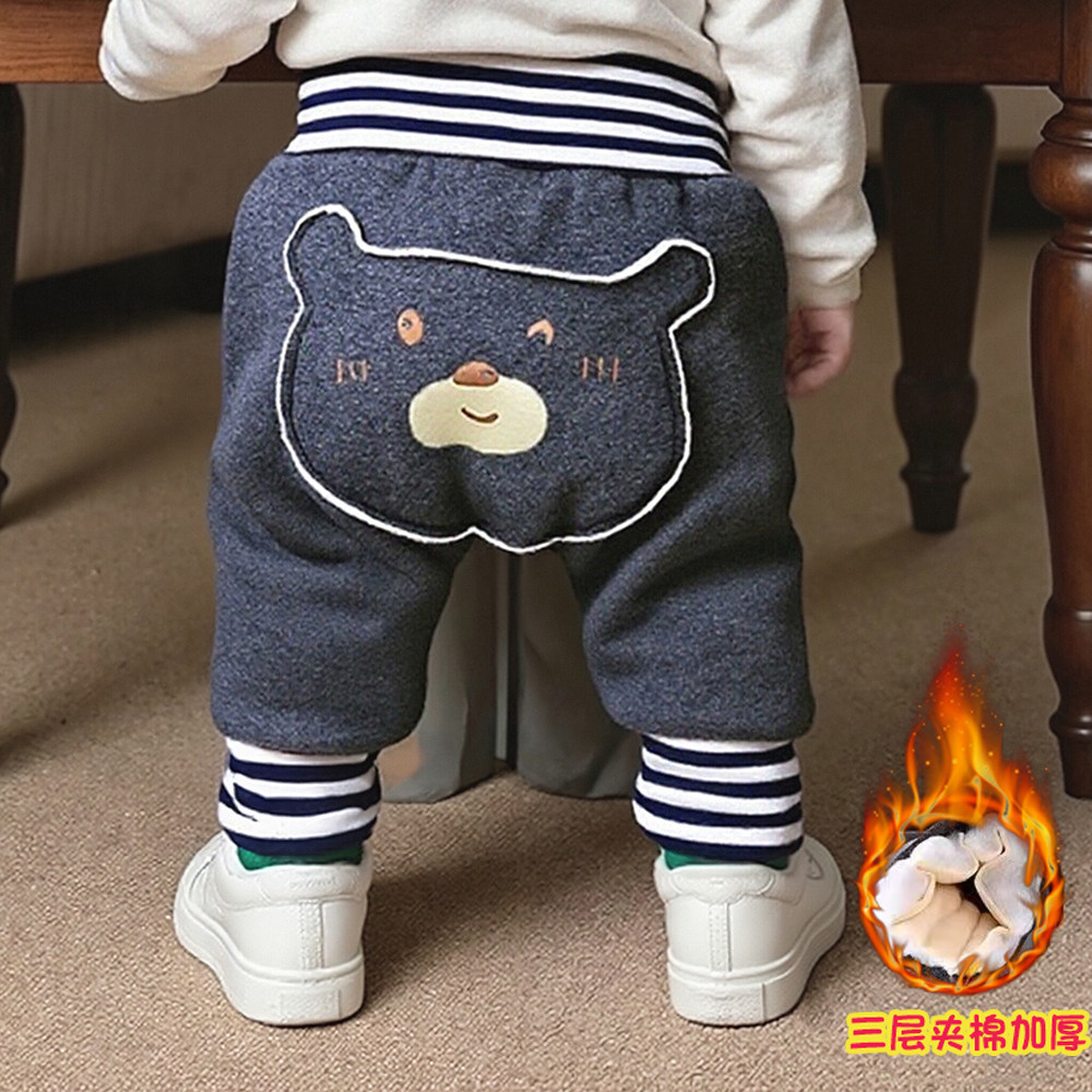 新生婴幼儿童裤 加绒加厚夹棉裤 子03 9月男女宝宝大pp屁裤 子 冬装