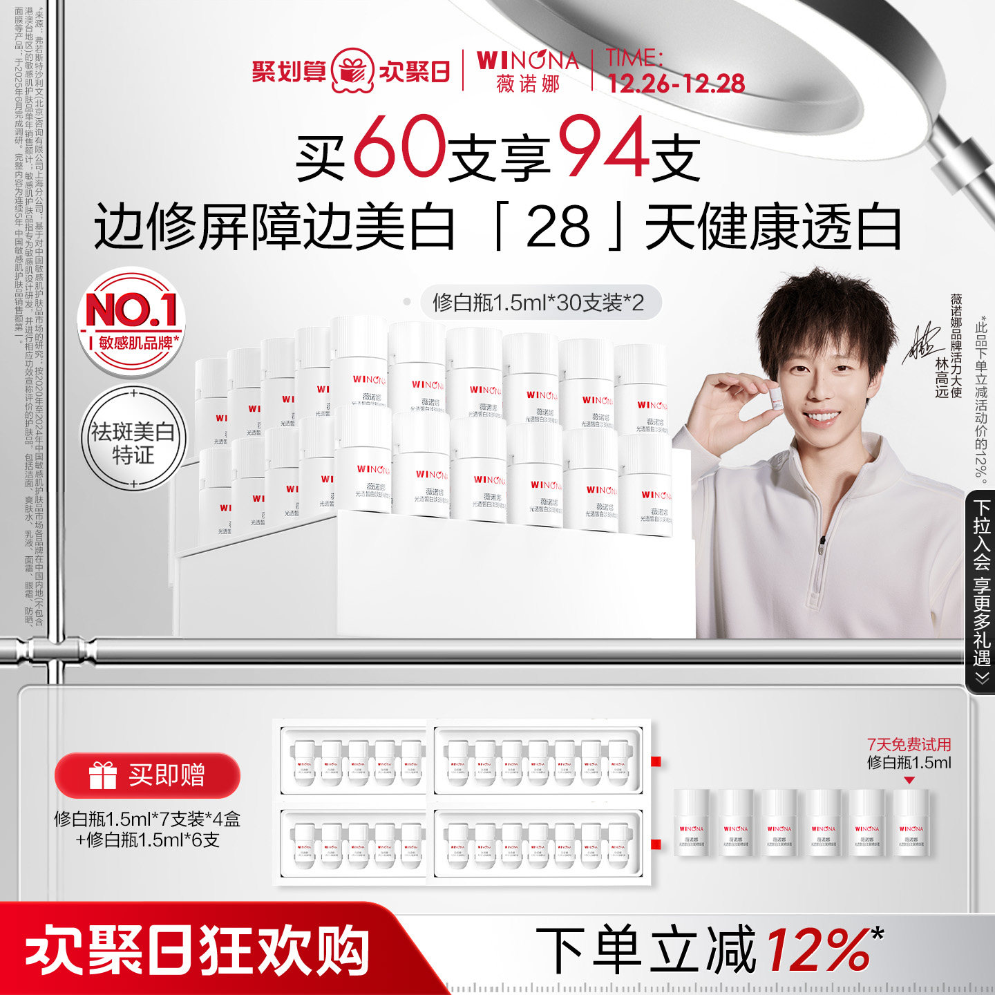 薇诺娜修白瓶光透皙白淡斑液精华美白次抛敏感肌祛斑提亮保湿 修护