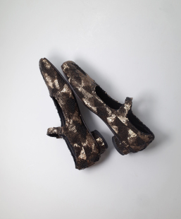 HOME WORK原创设计师手立体手工珠光片方头复古牛皮底低跟玛丽珍